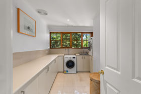 A large, centrally located laundry enhances everyday practicality, positioned within easy reach of the kitchen as part of a well-planned work hub. The remaining three bedrooms are set on the ground floor, surrounding a third living area"perfect as a teenagers' retreat"complete with a wood fireplace and rich hardwood timber floors that reinforce the home's warm, country-inspired aesthetic. Modern updates including double-glazed sliding doors and windows improve energy efficiency while seamlessly connecting indoor spaces to the surrounding pergolas and outdoor entertaining zones.